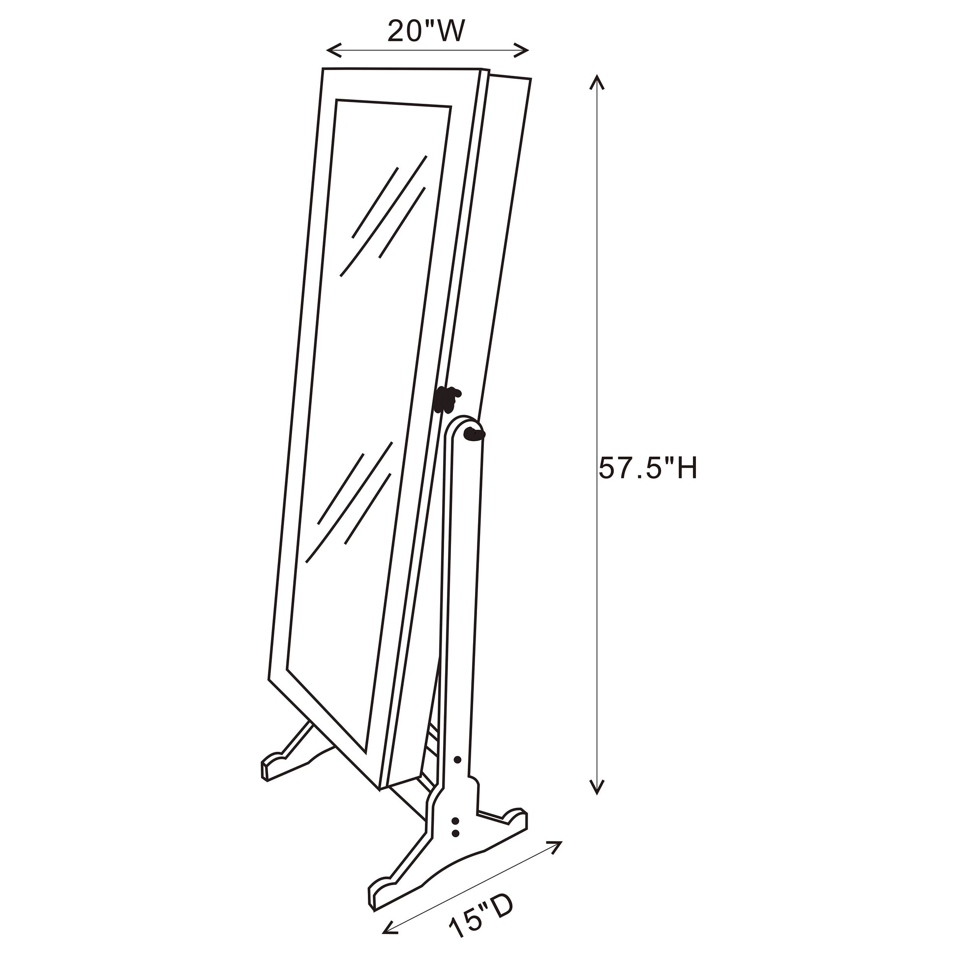 This brilliant multi-function jewelry Cheval mirror serves its purpose(s) in style. It's almost five feet tall, so it's got enough reflection to make sure you look great for stepping out. Open it up to three lower horizontal shelves and enough hooks and right holders for all your precious rings and necklaces. A built-in jewelry box that's four inches deep protects the rest of your precious accessories. Finished in majestic black, it also easily tilts for convenience that's also stylish.
