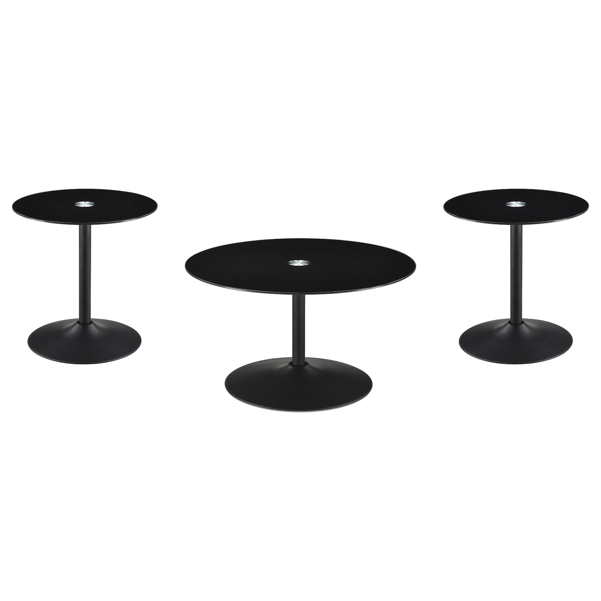 Ganso 3-piece Round Glass Top Coffee and End Table Set Black