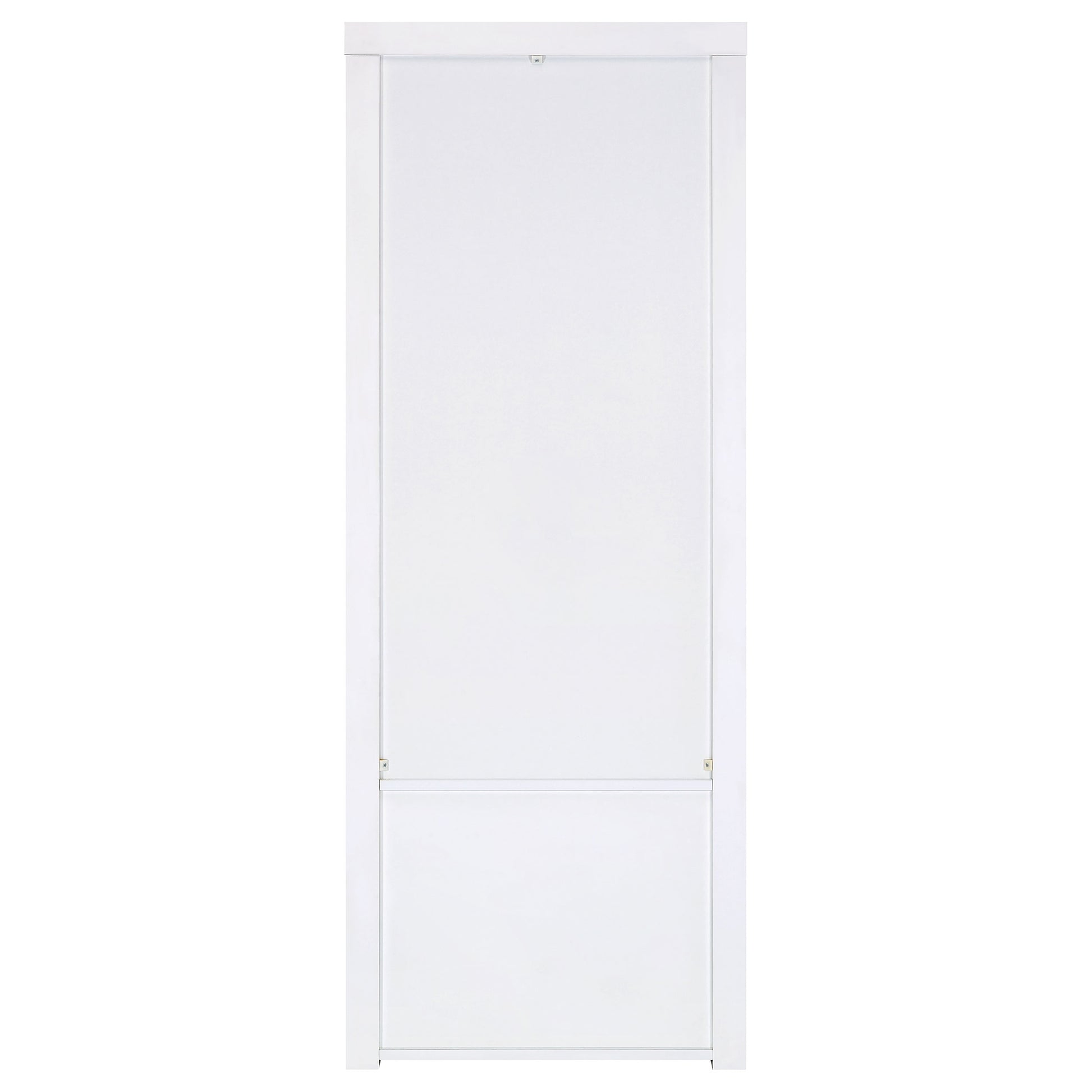 Extend a media console or add easy display space in a den or bedroom with this contemporary tower. Designed to accompany the matching media console, the tower adds a lower cabinet with shelving inside, and a pair of glass display shelves. It’s the perfect solution when both hidden and accessible storage are desired. A crisp white finish adds to the modern look and complements virtually any space. Melamine paper surfaces are designed for durability, perfect for everything from games and media to charming decor.