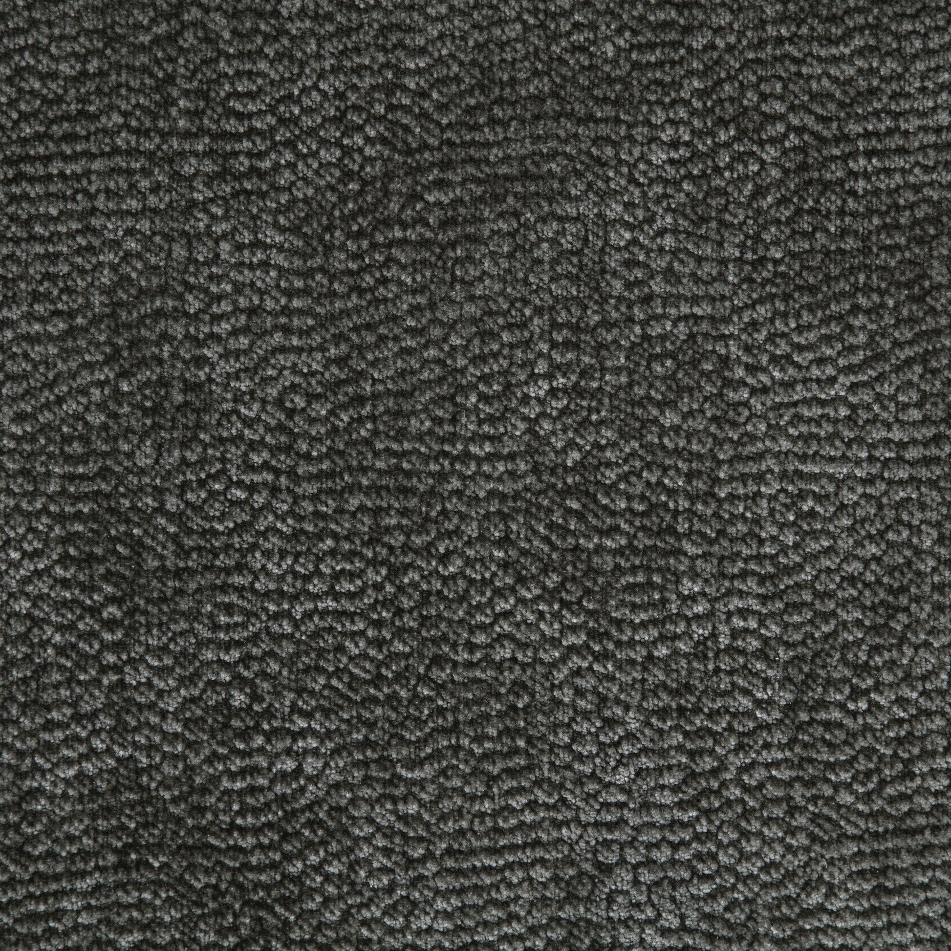 • Dark grey chenille upholstery features a soft texture with a refined woven appearance