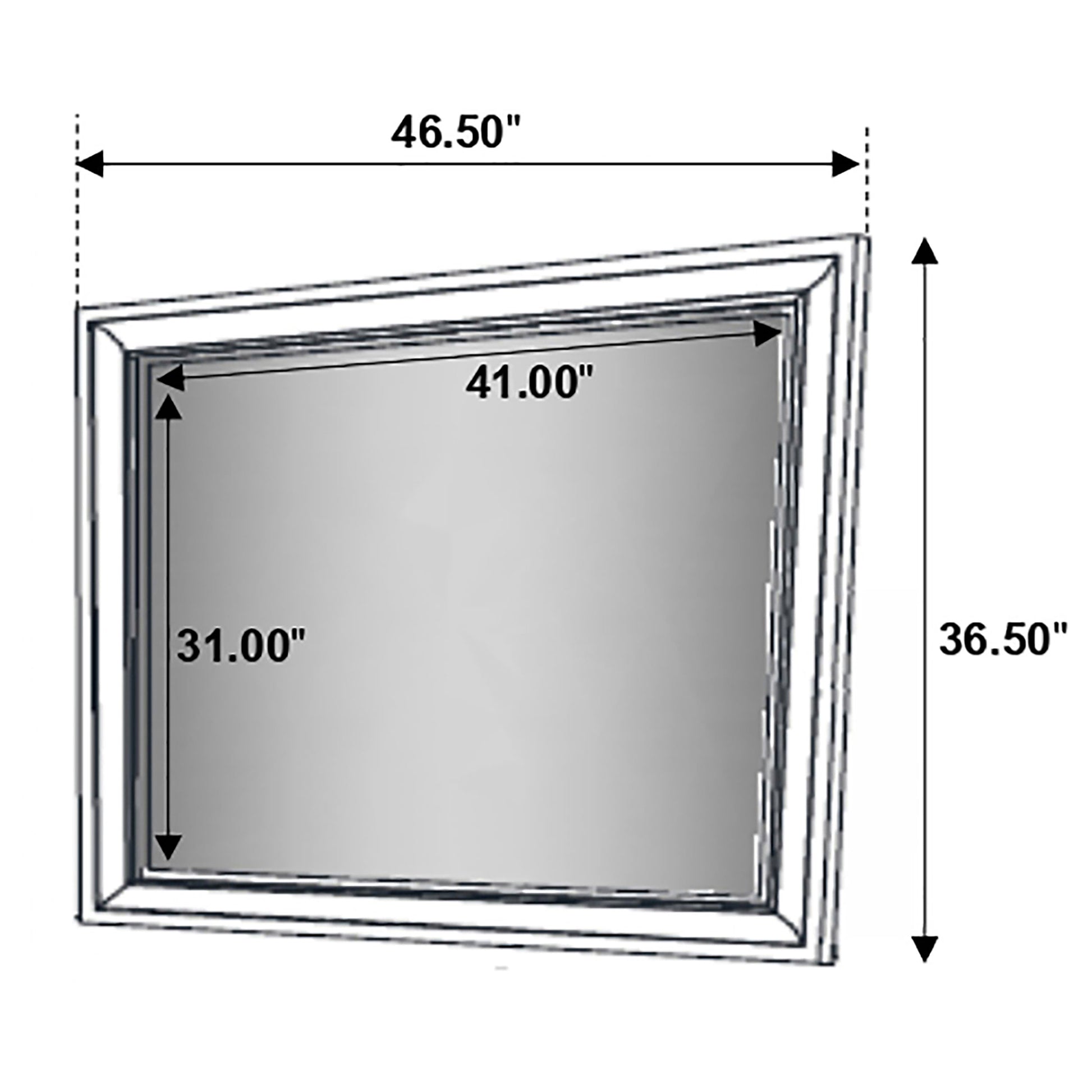 Classic yet versatile, this dresser mirror enhances any bedroom with timeless appeal. Designed with a clean, rectangular silhouette, its framed profile introduces elegant dimension and depth. A beveled glass surface adds refined visual clarity, reflecting light beautifully across the room. Built from engineered wood and finished with a protective laminate veneer, this mirror offers both durability and sophistication when paired with a matching dresser or case piece.
