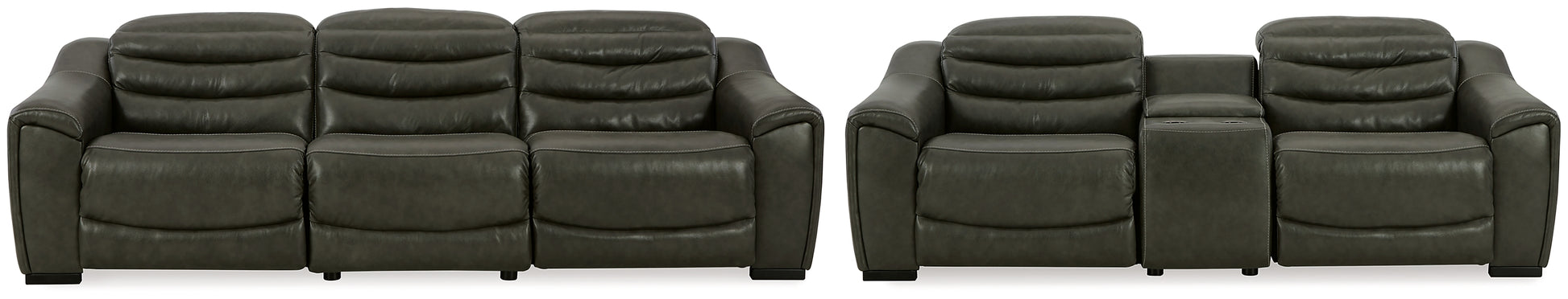 | Details | U63404S5: Includes 3 pieces: left-arm facing power recliner, armless chair and right-arm facing power recliner, "Left-arm" and "right-arm" describe the position of the arm when you face the piece, One-touch power control with adjustable positions, Easy View™ adjustable headrest and zero-draw USB port, Zero-draw technology only consumes power when the USB receptacle is in use, Corner-blocked frame with metal reinforced seat, Attached cushions, High-quality foam cushions wrapped in poly fiber, 100% top grain leather covers inside areas such as the back, seat and arm cushions; skillfully matched faux leather covers the remaining areas, Due to its natural origin, real leather can show individual characteristics such as healed scars, growth marks, grain variation and shade variation, Natural variations make each hide unique and do not detract from the wearing qualities of leather, Zero wall recliner design requires minimal space between wall and chair back, Power cord included; UL Listed, U63404S2: Includes 3 pieces: left-arm facing power recliner, console with storage and right-arm facing power recliner, "Left-arm" and "right-arm" describe the position of the arm when you face the piece, One-touch power control with adjustable positions, Easy View™ adjustable headrest and zero-draw USB port, Zero-draw technology only consumes power when the USB receptacle is in use, Corner-blocked frame with metal reinforced seat, Attached cushions, High-quality foam cushions wrapped in poly fiber, 100% top grain leather covers inside areas such as the back, seat and arm cushions; skillfully matched faux leather covers the remaining areas, Due to its natural origin, real leather can show individual characteristics such as healed scars, growth marks, grain variation and shade variation, Natural variations make each hide unique and do not detract from the wearing qualities of leather, Console with 2 cup holders, hidden storage, dual 110V outlets and dual USB charging ports, Zero wall recliner design requires minimal space between wall and chair back, Power cord included; UL Listed, | |