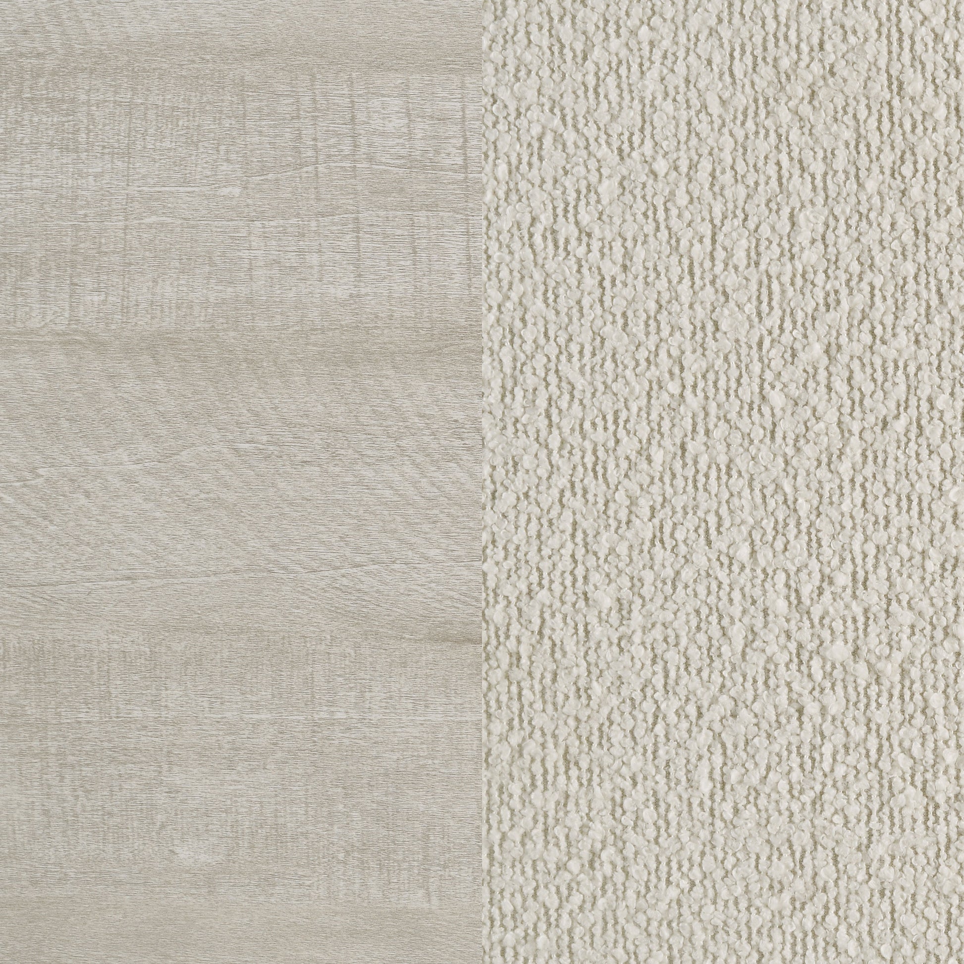 • Headboard upholstered in cream bouclé fabric for added softness and style