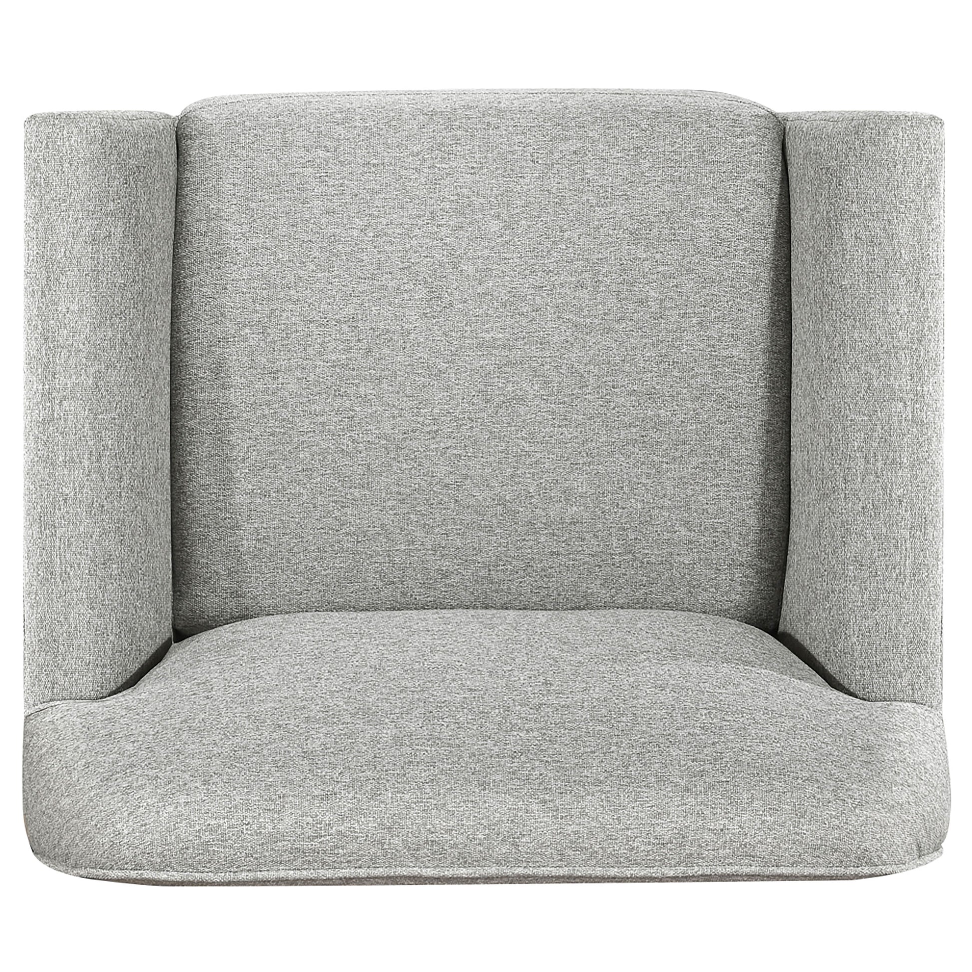 Clean lines and retro curves define this accent chair’s inviting silhouette. Flared arms and a subtly rounded backrest deliver sculptural presence, framed in warm blonde wood. Wrapped in soft grey polyester upholstery and anchored by a rubberwood structure, this armchair balances comfort with design. Ideal for reading nooks, lounge areas, or paired seating, it brings a blend of timeless shape and cozy cushioning.